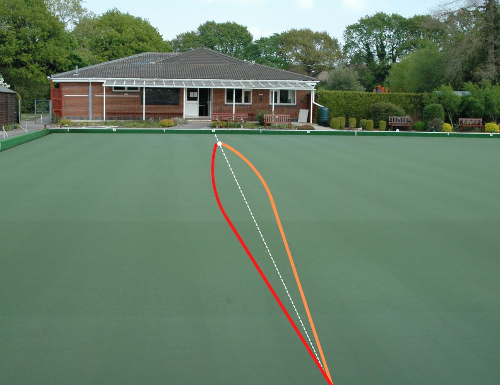 Therefore to get the bowl to finish in the centre of the rink you need to roll your bowl away from the centre, so the bowl can curve back in to the correct place.